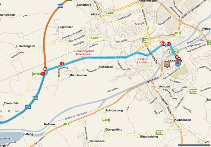 - Ausfahrt 12 der A9 - Die Auffahrt rechts Richtung Landshut-West / Altdorf-West / Bruckberg