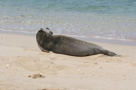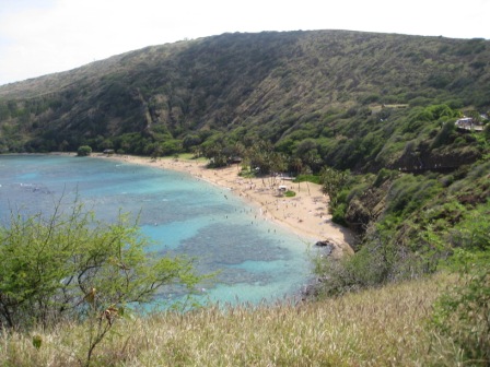 6 Uhr Morgens ging es los um den 232 m hohen "Diamond Head" zu erklimmen. Bei der Gelegenheit kamen uns ziemliche Menschenmassen entgegen, die sich wohl den Sonnenaufgang angesehen hatten.Nach erfolgreichem erklimmen des Gipfels und einem traumhaften Panoramablick über Waikiki und Honolulu beschlossen wir uns in die Wellen zu stürzen und ein wenig zu Schnorcheln. Bei der Gelegenheit hatten wir das Vergnügen mit den schönsten Tropenfischen zu schwimmen, Kofferfische ohne Ende zwar leider nicht so hübsch wie unser "Luis V." dafür zahlreicher. Schätze Gabriel hat sich ein wenig erschrocken, nachdem die Hawai'i-Doktorfische hier um einiges größer sind. Dabei hatten wir auch sehr viel Spaß beim Spielen und Schwimmen mit einem riesigen Fischschwarm, das war wirklich ein unbeschreibliches tiefbeeindruckendes Gefühl. Wir verabschiedeten uns auch von "Kermit" der heute einige Meter weiter am Strand lag, und faulenzte, auch heute ließ er sich nicht von den Schaulustigen bei seinem Nickerchen stören.