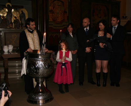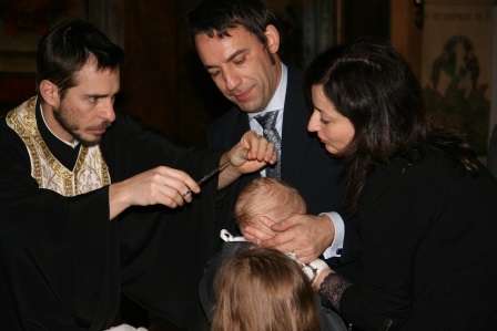| Die Taufpaten sind: mein Cousin Spyridon und seine Frau Euyenia Tasopoulos, die am Vortag aus den USA angereist sind.