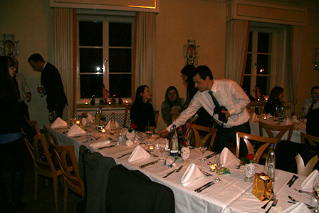 | Das Abendessen ist im Restaurant am Chinesischen Turm im Englischen Garten mit 32 Erwachsenen und 13 Kindern. Wir bekommen einen schönen großen Saal im 1. Stock ganz für uns... |