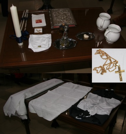| Die mit dem Taufzubehör "gedeckten" Tische. Zubehör für eine griechisch-orthodoxe Taufe finden sie unter: